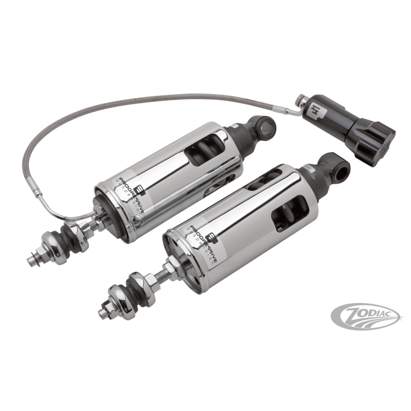 Les amortisseurs cachés sous le cadre rendent les réglages difficiles sur les cadres Softail. Plus maintenant avec ces Progressive Suspension 422 RAP (Remote Adjustable Preload). Ces amortisseurs haute performances ont un réglage de la précontrainte à distance situé derrière le repose-pied passager gauche. Le système RAP permet un réglage facile en fonction de la charge ou de la présence du passager. Ils sont également réglables de la hauteur stock à moins 2" avec l'utilisation d'outils normaux.