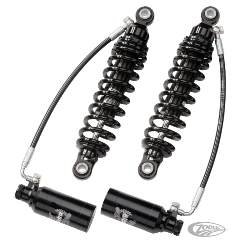 Les amortisseurs performance pour Baggers les plus compétitifs sur le marché. Les amortisseurs réglables à distance Bitubo WMM sont conçus, mis au point et fabriqués à la main en Italie par des experts en suspension de course qui sont champion du monde. Ils sont facilement réglables avec un réservoir à distance avec réglage de compression à 12 clics et de rebond à 5 clics ainsi que d’une précharge à filetage fin pour configurer la conduite pour des performances maximales. Ces amortisseurs offrent également une extension de 1/2 "(12mm) et sont entièrement réparables et reconstructibles. Les corps d'amortisseur sont fabriqués en acier haute résistance, ont une tige en acier de Ø12mm, une chambre de compensation en aluminium séparée avec de l'azote sous pression et un piston flottant Séparateur huile/gaz, ils sont également dotés de têtes en alliage d'aluminium usiné CNC. Ils sont livrés complets avec des supports de montage pour les réservoirs distants.