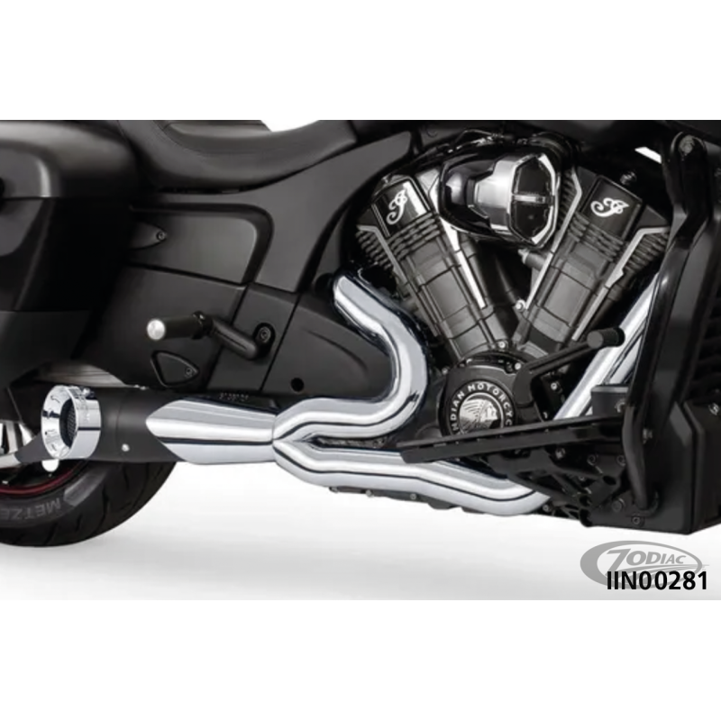 Pour 2020 au présent Indian Challenger Base, Challenger Dark Horse, Challenger Limited & Challenger Standard, Turn-Out 2 en 1 chromé avec silencieux noir et embout chromé Straight Cut