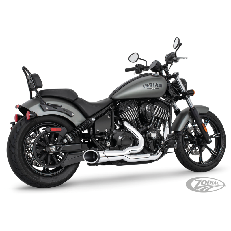 Pour 2022 au présent Indian Chief Bobber, Chief Classic, Chief Dark Horse, Chief Standard, Chief Vintage et Super Chief, Combat Shorty 2-en-1 chromé avec embout Slash Cut noir sculpté