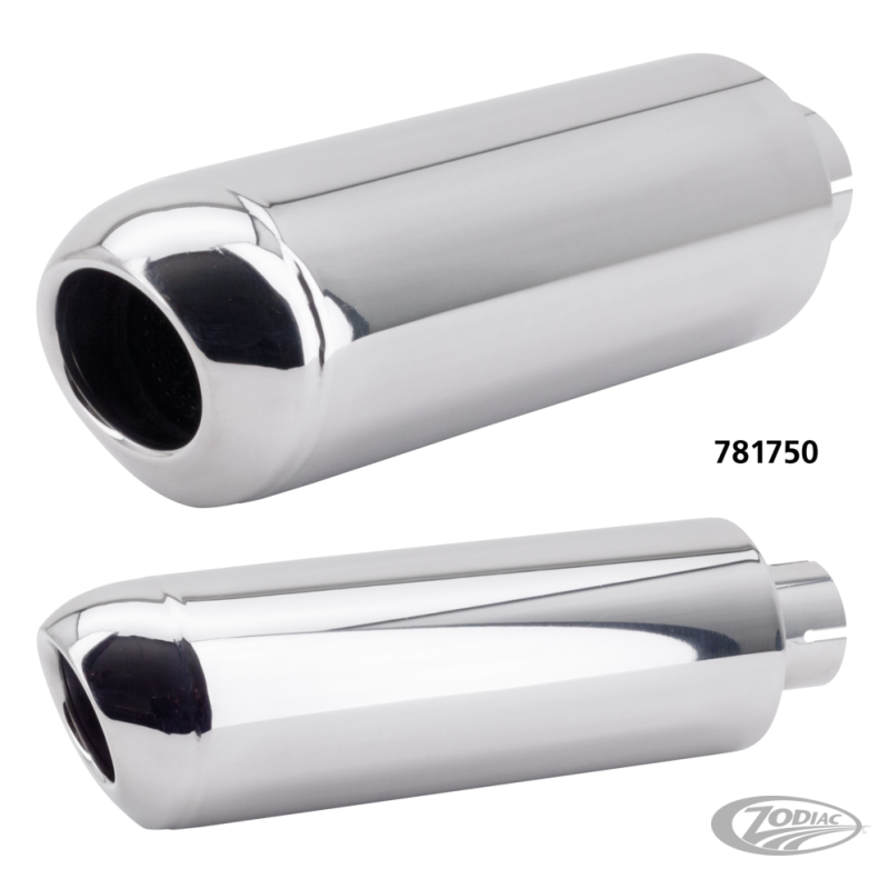 Silencieux universels en inox pour collecteurs de diamètre 1 3/4" ou 2". Ils mesurent 25 cm de long, ont un diamètre de 65mm et incluent un collier de fixation pour le corps. Les colliers de silencieux au tube doivent être commandés séparément.
