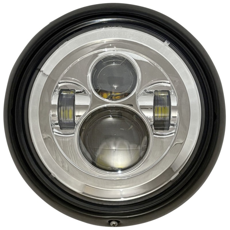Phare led chromé a lentille claire 7" avec cerclage pour carenage batwing corner value triple eye