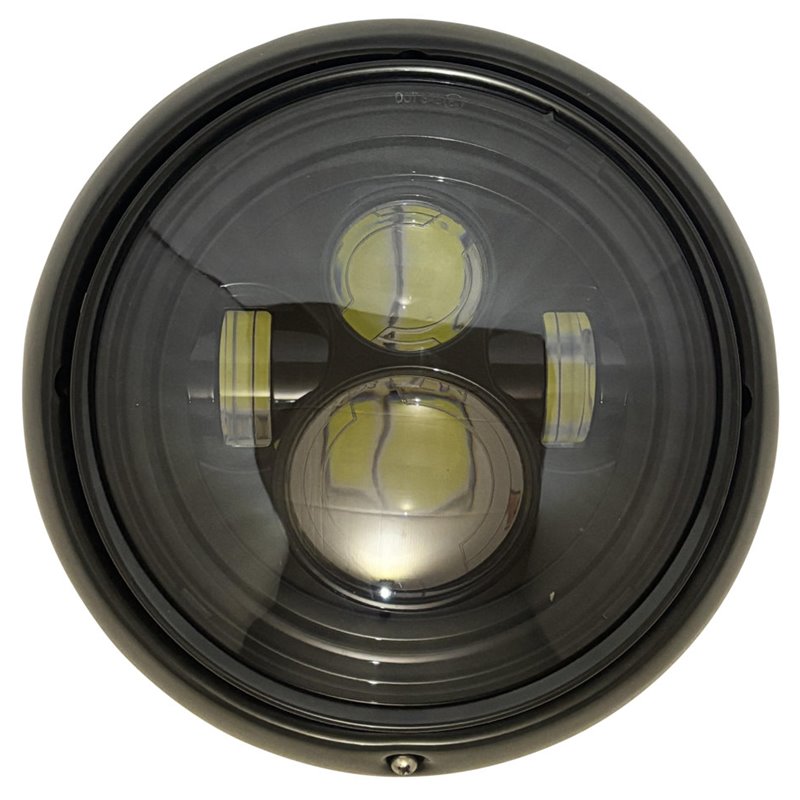 Phare led noir à lentille fumée 7" avec cerclage pour carenage batwing corner value triple eye