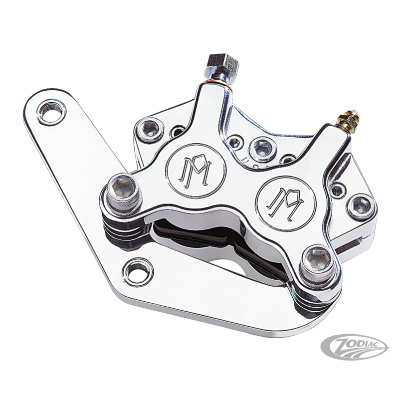 L'étrier original 4 pistons usiné en aluminium est toujours un des meilleurs disponible. Beaucoup ont essayé de copier le 125x4SL mais sans succès. Soyez sérieux dans votre investissement frein et ne prenez pas une pale copie, prenez PM. Disponible pour modèles de 1984 au présent FXR & XLH avec roues à rayons simple ou double disque. Ces étriers et fixations sont conçus pour disque stock ou style stock en 11 1/2". Il existe des kits simple ou double disque. Utilisation custom également possible si vous faites les fixations.