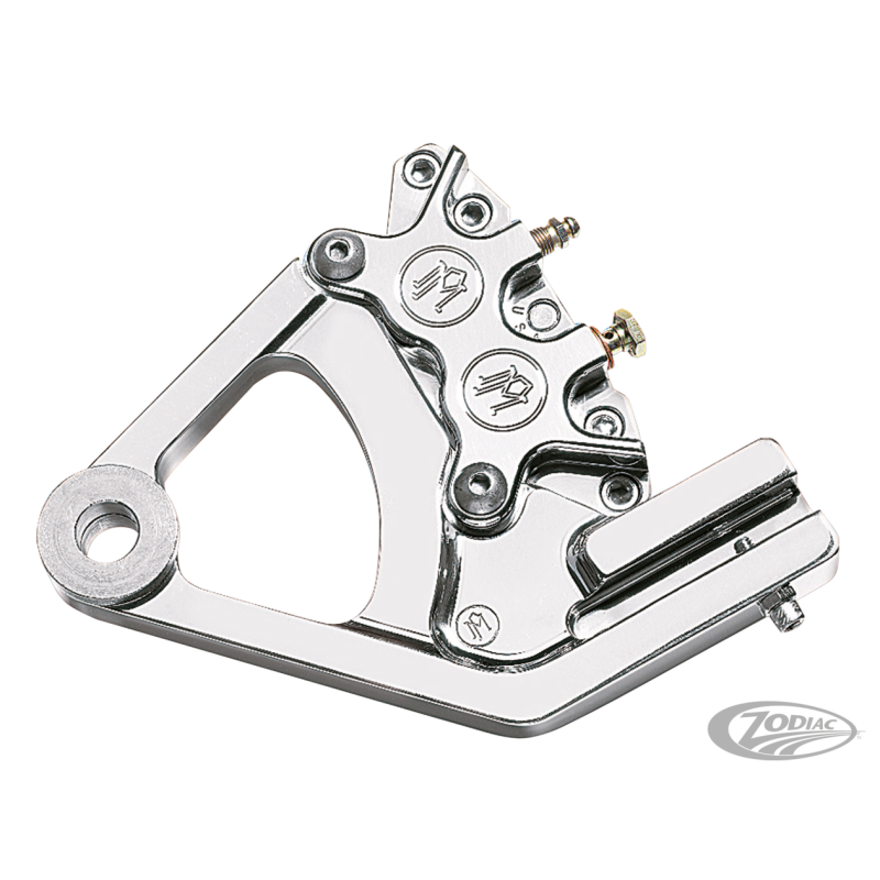 Le classique design de l'étrier PM quatre pistons est un choix reconnu pour équiper l'arrière de toute Harley. Sa puissance de freinage et son endurance satisferont les conducteurs les plus sportifs. Installation facile. Pour disque stock ou style stock en 11 1/2". Le kit comprend un étrier 125x4R et fixation.