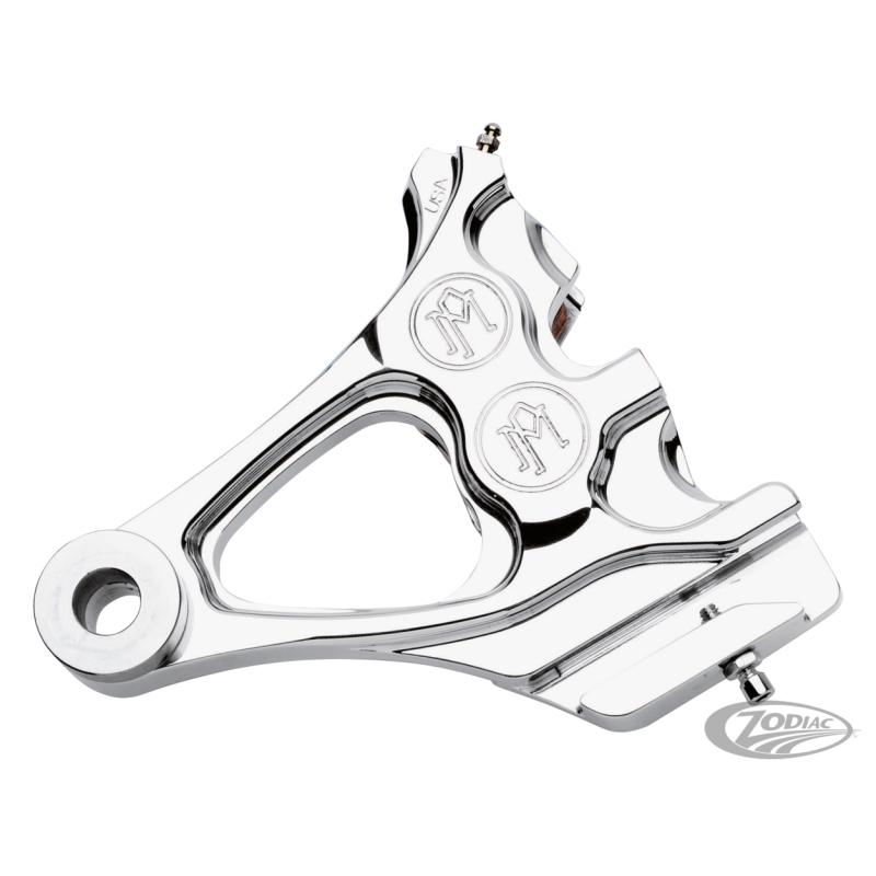 Etrier quatre pistons PM dans un même bloc que la fixation. Ce système vous donnera le meilleur freinage possible. Le système de purge est également facilité grâce à sa position.