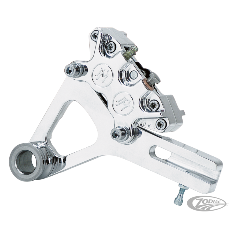 Le classique design de l'étrier PM quatre pistons est le choix reconnu pour équiper l'arrière de toute Harley. Sa puissance de freinage et son endurance satisferont les conducteurs les plus sportifs. Ce qu'il y a de mieux pour votre Dyna, meilleur look et performances que l'origine. Installation facile. Pour disque stock ou style stock en 11 1/2". Le kit comprend un étrier poli 125x4R et fixation polie miroir, chromée ou contrast cut. L'installation sur les modèles de 2000 au présent requiert l'achat séparé de durite de frein plus longue que celle d'orgine.