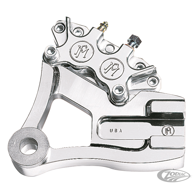 Le classique design de l'étrier PM quatre pistons est le choix reconnu pour équiper l'arrière de toute Harley. Sa puissance de freinage et son endurance satisferont les conducteurs les plus sportifs. Ce qu'il y a de mieux pour votre Dyna, meilleur look et performances que l'origine. Installation facile. Pour disque stock ou style stock en 11 1/2". Le kit comprend un étrier poli 125x4R et fixation polie miroir, chromée ou contrast cut. L'installation sur les modèles de 2000 au présent requiert l'achat séparé de durite de frein plus longue que celle d'orgine.