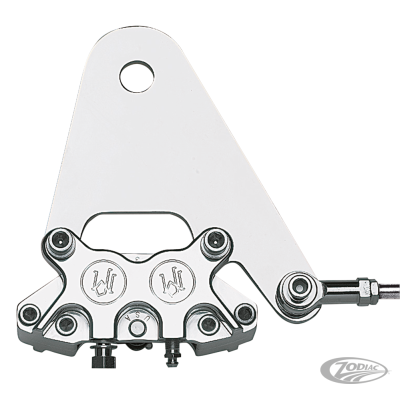 L'étrier quatre pistons est le choix préféré des customiseurs depuis plusieurs années. Il vous donnera le freinage que vous pouvez attendre d'un étrier quatre pistons pour votre rigide. Pour tout modèle de rigide (à l'arrière) ainsi que des cadres Softail aftermarket ou tout autre. Comprend un étrier 125X4R avec sa fixation. Disponible pour disque 10" ou 11.5" stock ou aftermarket.