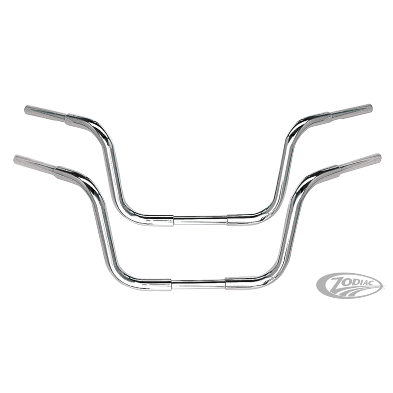 10" (25cm) rise Phat Ape Hanger handlebar A=25cm, B=19cm, C=100cm, D=26cm, E=40cm, F=25cm, G=8.9cm, Guidon Phat Ape 10", chromé, empreinte style B