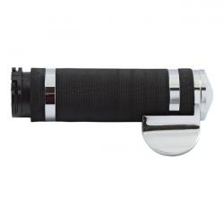 Avec embout throttle boss (pièce en bout d'accélérateur qui a pour but d'acceullir l'angle de la main). Semblable aux poignées à coussin d'air Avon, l'Air-SS intègre un système de poches d'air à l'intérieur de la poignée pour amortir les vibrations, mais la poignée Air-SS n'a pas de bosses de surface mais un diamètre de surface constant. Complet avec une texture moletée améliorant l'adhérence avec des embouts et des colliers en aluminium 6061 billette. Fabriqué aux États-Unis. - Pour guidons 1 pouce - Avec accélérateur assisté
