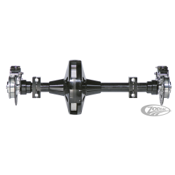 L' installation de ces kits de conversion pour Softail ou Touring ne requiert aucune modification aux points de montage du cadre d'origine. Comme c'est une conversion directe par montage vous pouvez repasser d'un trike à votre moto d'origine quand vous le voudrez dans le futur. Les bras oscillants sont disponibles pour Sportsters, touring, 1984-1999 Evolution Softail ainsi que 2000 au présent Twin-Cam Softail. Ces kits iront aussi sur la plupart des cadres aftermarket type origine. Il n'y a pas besoin de déporter le primaire ou la boite mais comme un trike requiert en général plus de chasse qu'un deux roues il est fortement recommandé d'utiliser des Tés inclinés de 3 degrés. Ces ponts arrière de trike peuvent aussi être utilisés pour restorer les Servicars ou construire votre trike avec votre propre cadre. Caractéristiques des bras oscillants: •Conception "No Flex" •Construction pour montage direct •Utilise les amortisseurs d'origine ou aftermarket Caractéristiques des ponts arrière: •Construction pour montage direct •Finition noire et carter de différentiel en aluminium usiné CNC •Poulie 70 dents 1 1/8" ou couronne 51 dents pas de 530 •Différentiel à glissement •Disques percés en inox •Etriers chromés •Disques percés •Acceptent toutes les jantes avec perçage 4 3/4" (120.6mm) 5 trous comme utilisés sur la plupart des voitures américaines •Largeur totale (sans les roues) 40 1/2" (103 cm)