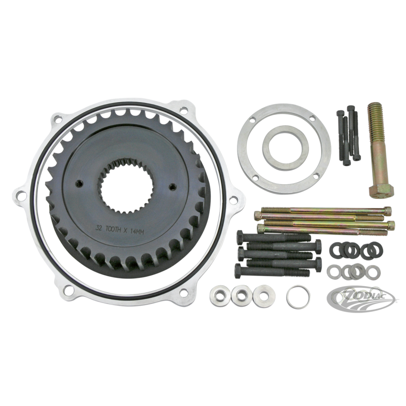 Ces kits de déport de primaires permettent l'installation de pneus jusqu'à 240 de larges dans des bras oscillants larges sans démonter la transmission et d'utiliser une courroie d'entraînement de 20mm de large ou une chaîne. Comprend entretoises de primaire 1/4" (6,35mm), vis de démarreur longues, entretoise de compensateur, boulon moteur rallongé, l'entretoise d'embrayage et une poulie de 32 dents déportée.