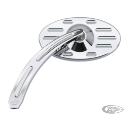 Comporte une tête de rétroviseur ovale moletée et tige moletée incurvée. Taille de rétroviseur: Tête 5"x2 11/16", Tiges-Longueur de 6".