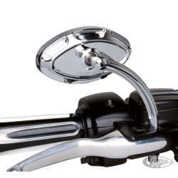 Des rétroviseurs styles et usiné qui ont un pivot en inox qui est dans chaque tige de rétroviseur. Ces rétroviseurs type oeil de chat font en taillle 4 1/2"x2 1/2" ils ont une glace convexe avec un système de resort caché qui garanti de ne pas se desserer avec les vibrations. Toute la visserie nécessaire est incuse.