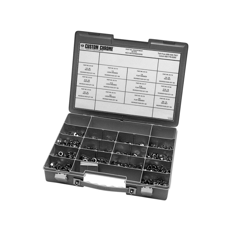 Assortiment d’écrous hexagonaux et de rondelles plates en chrome